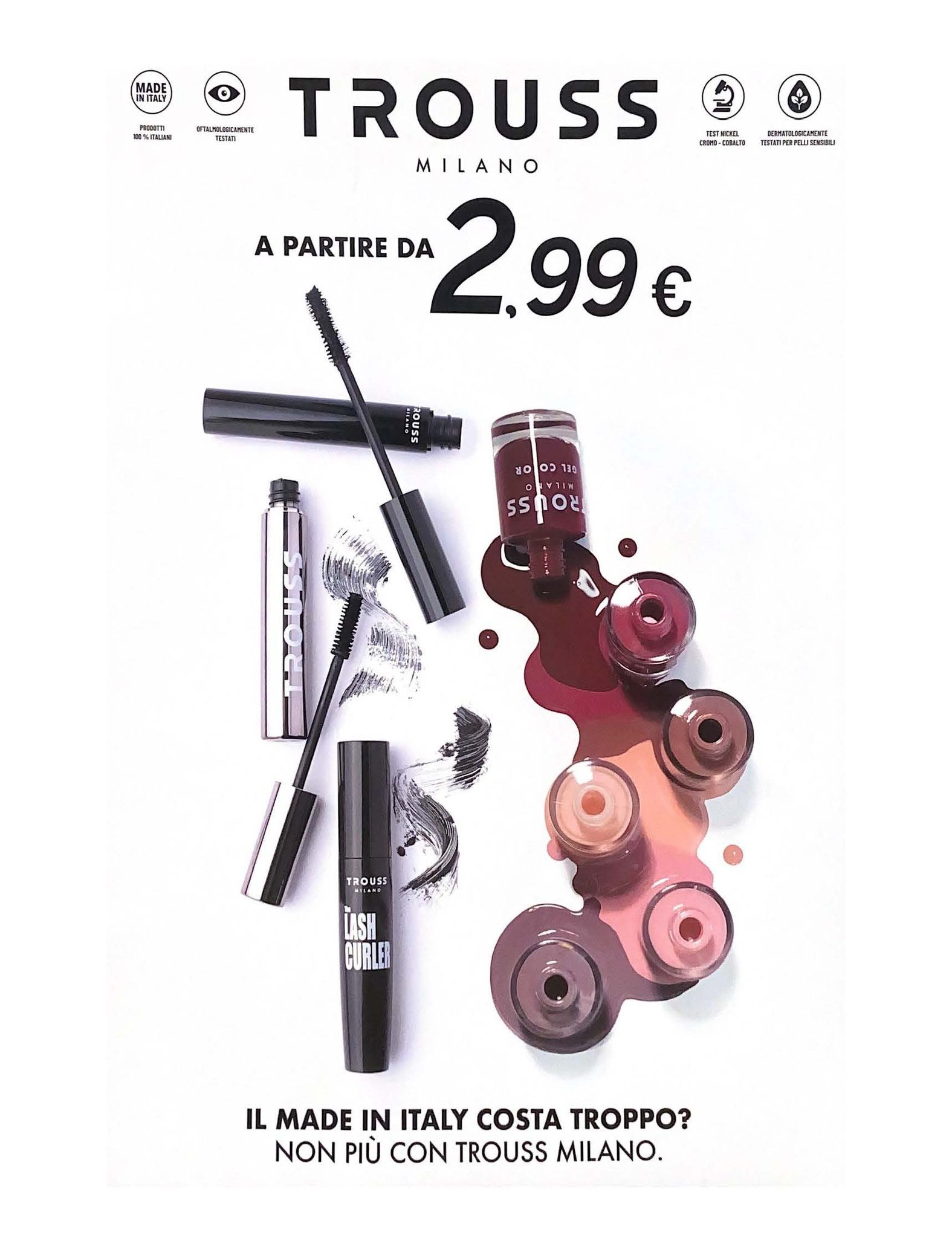 La Farmacia Silvestri di Isernia è lieta di offrire ai propri clienti la linea Trouss Milano, prodotti Made in Italy che coniugano qualità e sicurezza. Prodotti make-up vegani, cruelty-free ed esclusivi dalle texture innovative e dai colori attinti dalla natura: emozione, stile, passione e rispetto sono i valori che ispirano la mission di Trouss. Scoprite tutti i prodotti make-up di questa linea presso la nostra farmacia.